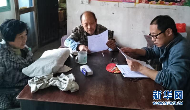 李夏(左)在貧困戶家中走訪(資料照片)。? 新華社發