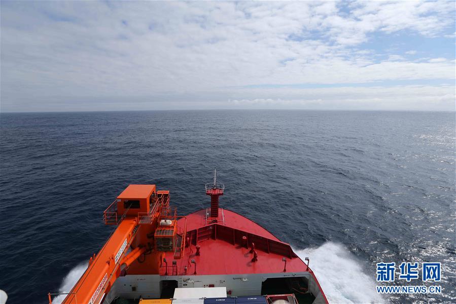 “雪龍2”號駛離南極宇航員海的密集浮冰區,向北穿越西風帶(1月10日攝)。新華社記者 劉詩平攝