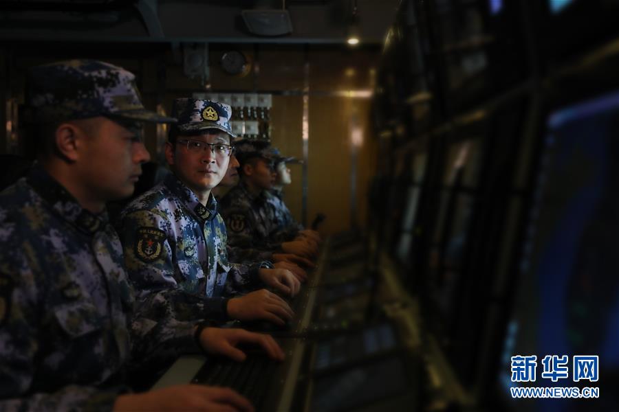 南昌艦副航海長段春杰在戰位上(1月19日攝)。 新華社記者 琚振華 攝