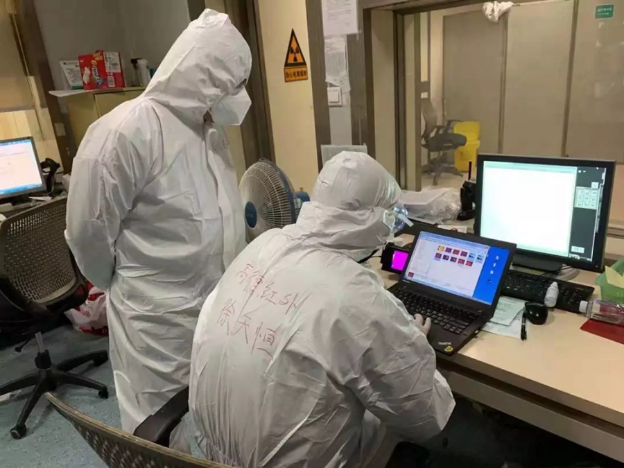 圖為高德紅外員工奮戰在醫院第一線。