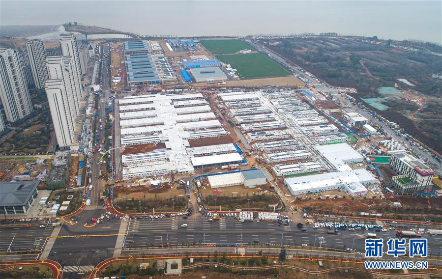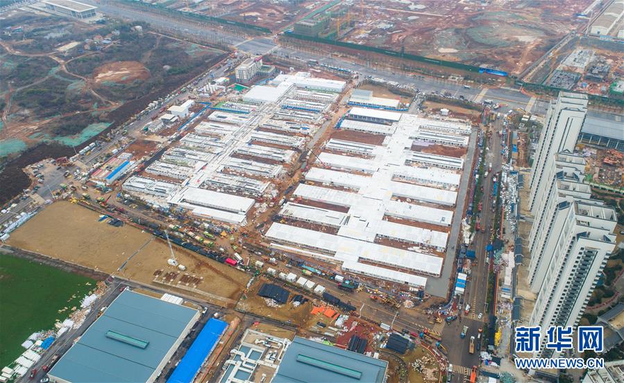 2月7日拍攝的武漢雷神山醫院(無人機照片)。經過十晝夜的奮戰,2月6日,雷神山醫院正式通過武漢市城建和衛健部門的驗收,并開始逐步移交。新華社記者 肖藝九 攝