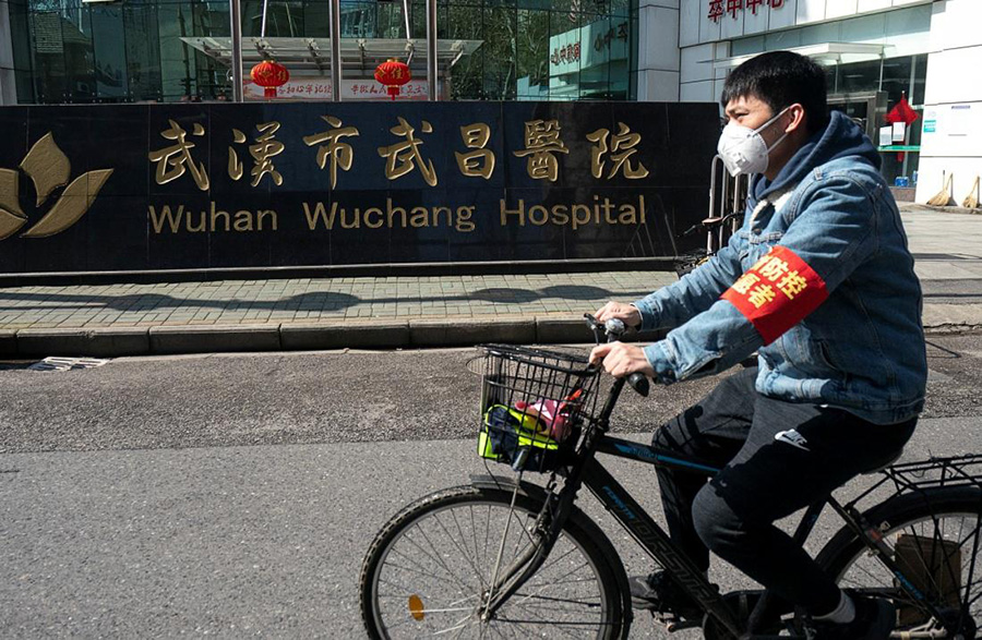 2月21日,一名市民經過武漢市武昌醫院。(新華社記者熊琦攝)