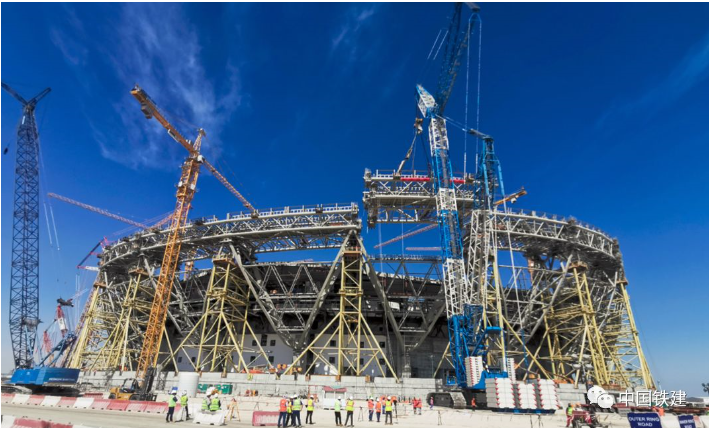 ▲盧賽爾體育場主體鋼結構吊裝完工