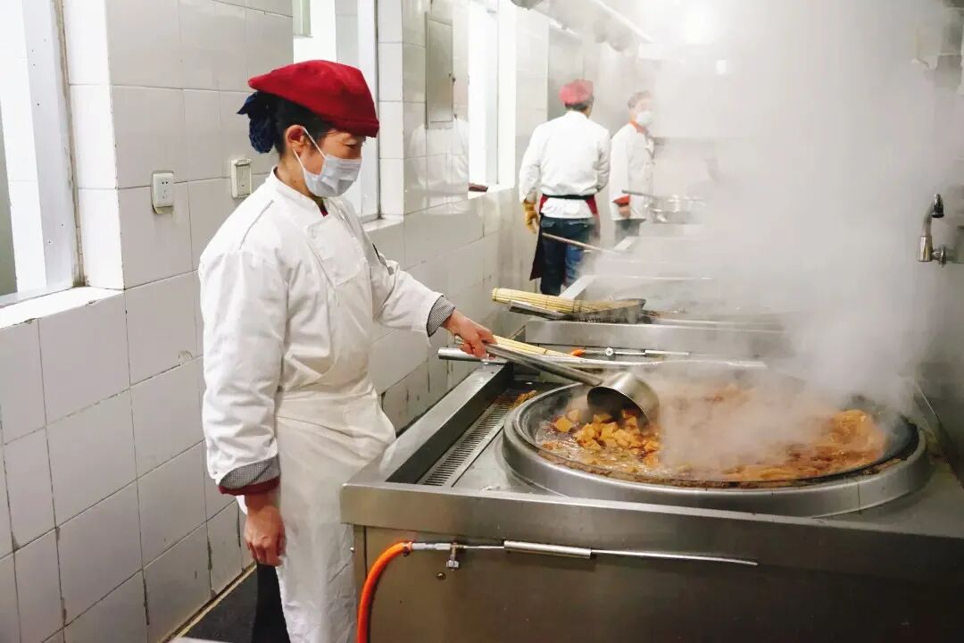 伙食團的師傅們凌晨4時進入后廚,一直要忙到晚上八九點。從準備食材、煎炒烹炸,到整理餐具、收拾擺臺;從面食米飯、果蔬葷素,到保證菜品豐富多樣,餐餐可口……每天要接待1000多人次分7批次就餐,確保調度員隨時吃上熱乎乎的飯菜。