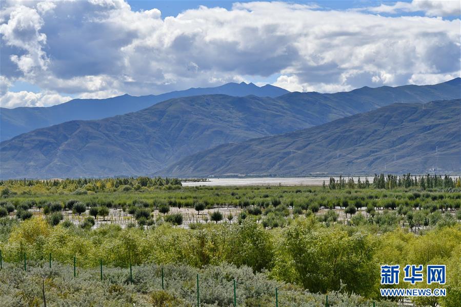 雅魯藏布江山南段的防風固沙林(2019年8月29日攝)。新華社記者 張汝鋒 攝