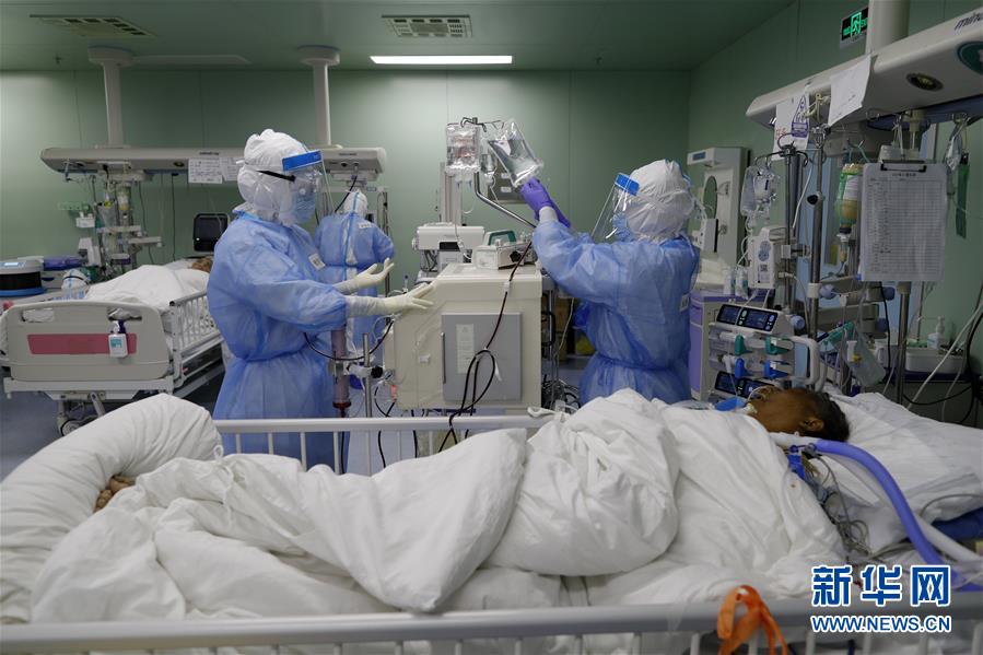 4月24日,在位于武漢的華中科技大學同濟醫學院附屬協和醫院西院,醫務人員在護理核酸檢測結果轉陰的新冠肺炎病人。當日,湖北省及武漢市所有新冠肺炎重癥病例實現清零。新華社記者 沈伯韓 攝