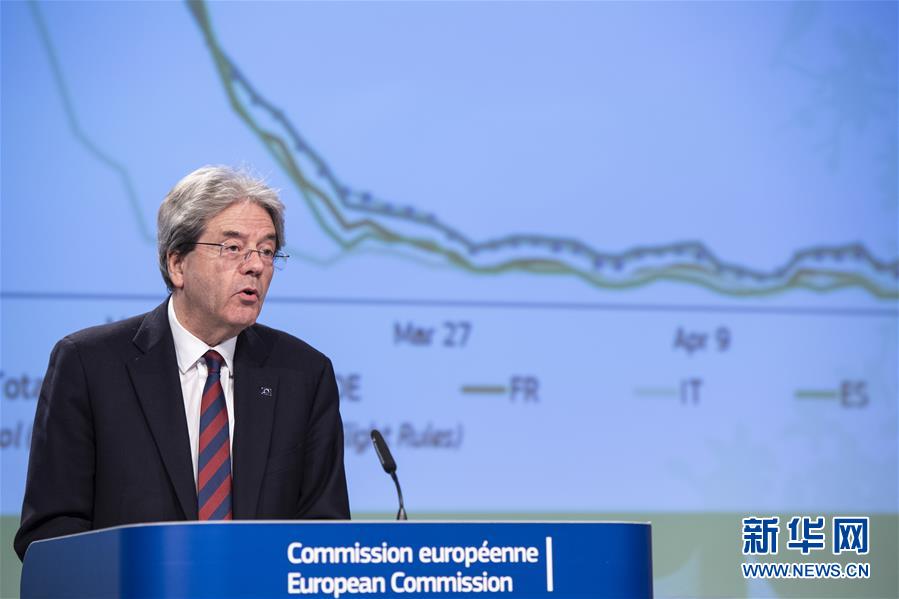 5月6日,在比利時布魯塞爾的歐盟委員會總部,負責經濟事務的歐委會委員保羅·真蒂洛尼出席新聞發布會。新華社發(歐盟委員會供圖)