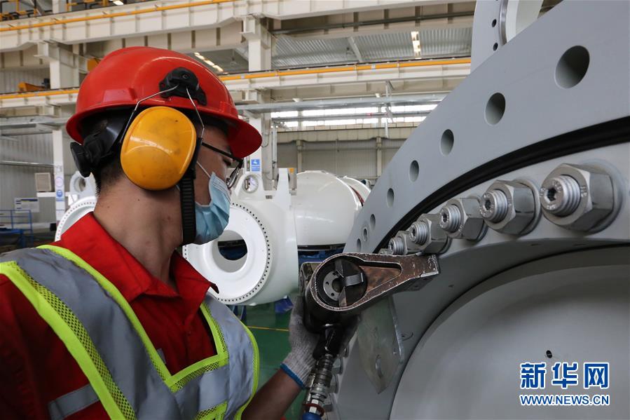 5月5日,工人在哈密金風風電設備有限公司生產車間作業。新華社記者 杜剛 攝