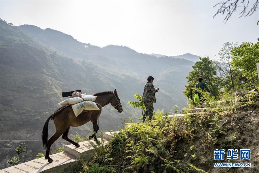 村民李小波準備去山里勞動(4月16日攝)。新華社記者江文耀攝