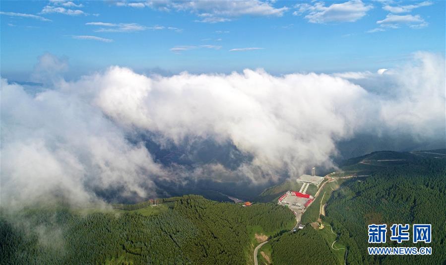 位于寧夏固原市隆德縣境內的六盤山紅軍長征紀念亭(無人機照片,2018年8月29日攝)。新華社記者 王鵬 攝