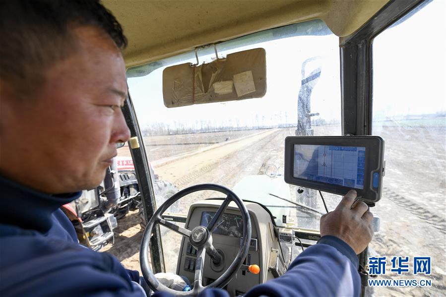在位于寧夏吳忠市利通區金積鎮塔灣村的智慧農業科技示范區,農機手在播種前調試自動駕駛拖拉機(2020年4月9日攝)。新華社記者 馮開華 攝