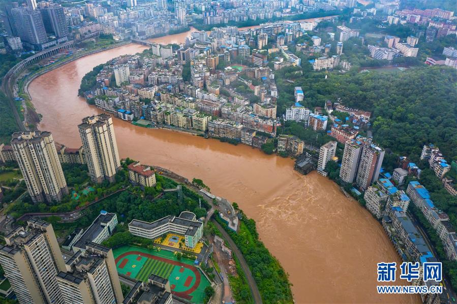 綦江城區部分居民樓被淹(7月1日攝)。新華社發(陳星宇 攝)
