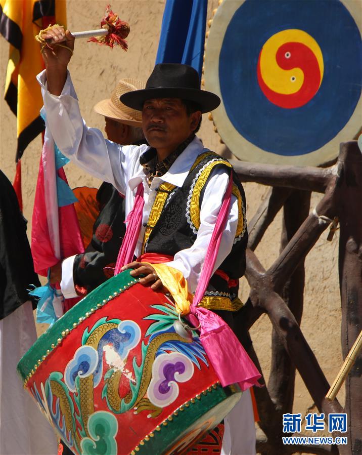 6月18日,當地群眾在表演“納頓”“會手舞”。新華社記者 周喆 攝