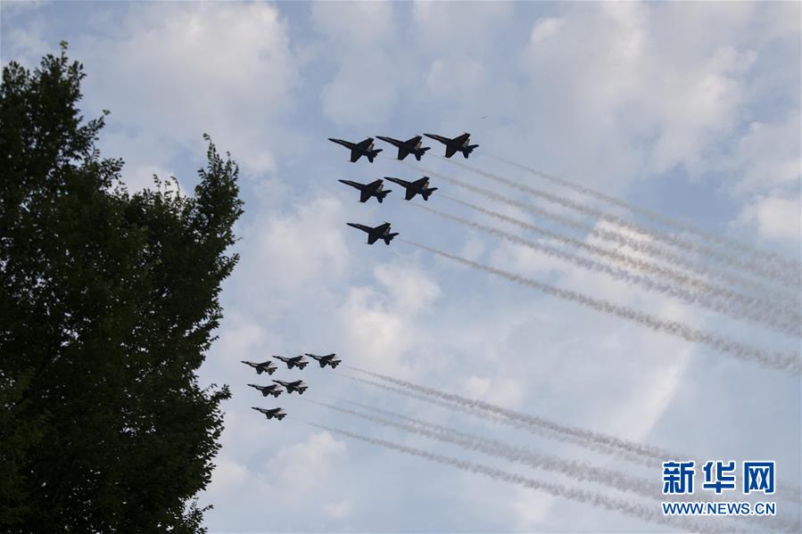 7月4日,飛機在美國華盛頓上空進行飛行表演,慶祝美國獨立日。新華社記者 劉杰 攝