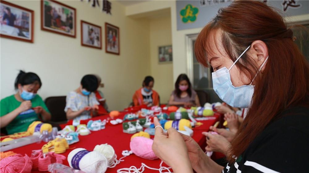 在四川省閬中市王家嘴社區殘疾人編織基地,工人在制作手工兒童鞋(6月14日攝)。新華社記者 楊進 攝