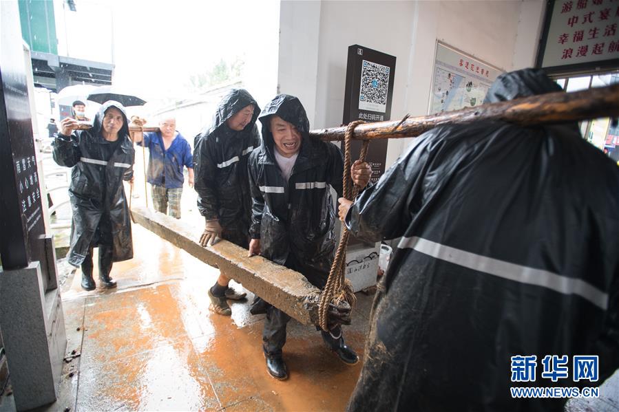 7月6日,工作人員在湖北武漢龍王廟封堵閘口。 新華社記者 肖藝九 攝