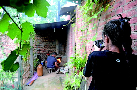8月5日,王曉楠(左)與父親在河邊拍攝后準備回家。組圖均由新華社記者郝源攝