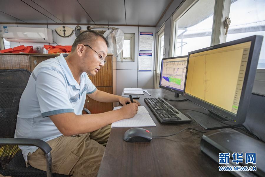 8月18日,重慶寸灘水文站工作人員在記錄洪水測量數據。? 新華社記者 黃偉 攝