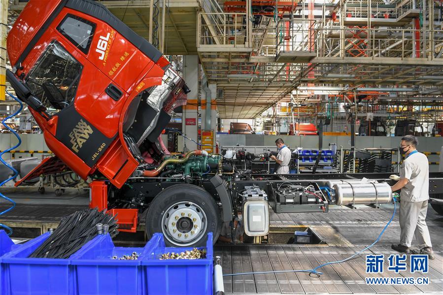 在位于長春的一汽解放總裝車間,工人在裝配車輛(6月19日攝)。 新華社記者 張楠 攝