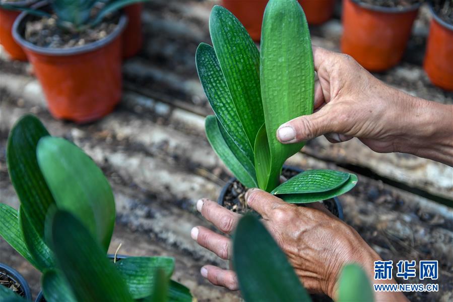 此后,越來越多的貧困戶參與到項目中。貧困戶趙洪堂夫婦是殘疾人,2017年進入繁育基地打工。剛來時他們對君子蘭種植完全不懂,如今已成為技術骨干,每年負責對新員工進行技術培訓。夫妻倆的年收入如今已到6萬元。