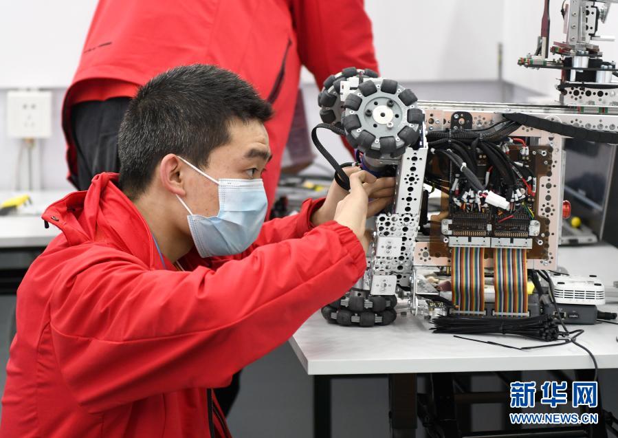 12月10日,選手在移動機器人項目比賽中調試機器人。新華社記者 盧漢欣 攝