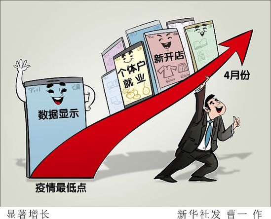 數據顯示,4月份與疫情最低點2月1日當周相比,每周新增個體戶小店數量平均提高79%,每周新增小店的交易金額平均增長305%。在2月上旬,活躍的個體戶小店減少了40.4%,營業額降低了52.4%。(新華社發 曹一 作)