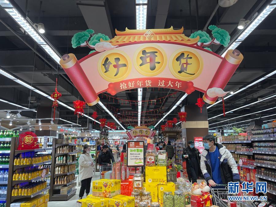 2月7日,市民在沈陽一家超市選購年貨。新華社記者 李恒 攝