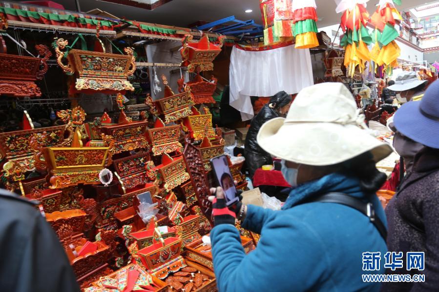 新年臨近,拉薩街頭采辦年貨的人群熙熙攘攘,大街小巷張燈結彩,古城街巷洋溢著濃濃的年味。布達拉宮前搭建起“歡度春節藏歷新年”吉祥裝飾,沖賽康市場和八廓商城等傳統年貨市場顧客盈門,人們互道:“洛薩扎西德勒(藏語:新年好)!”