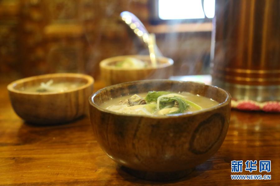 “古突”夜當晚,拉薩市恩惠苑社區居民次仁巴珠家熱氣騰騰的“古突”(2月10日攝)。新華社記者 張兆基 攝