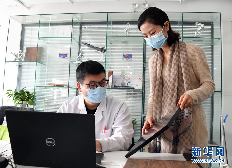 光之科技(北京)有限公司副總經理楊敏(右)與員工交流(2月18日攝)。新華社記者 任超 攝