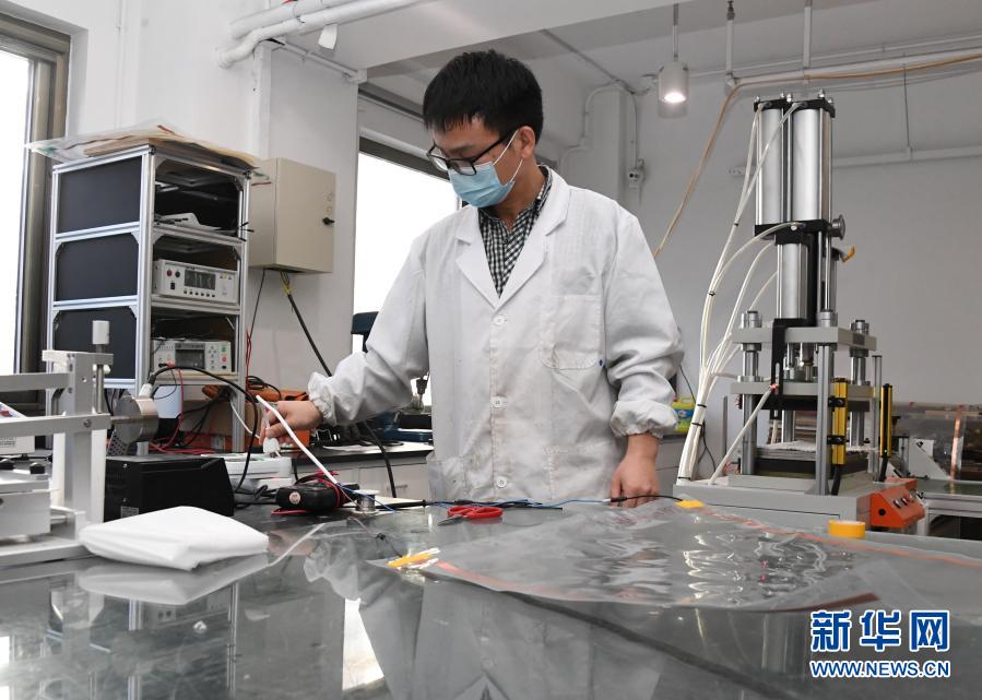 實驗室里,研究人員正在小批量生產制熱材料?!靶虏牧系暮穸纫簿褪穷^發絲的三千分之一?!毖芯繂T王鵬告訴記者,但它的電熱轉化率卻高達99.45%。