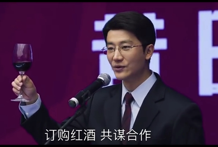 《山海情》中男主角馬得福向客商推介閩寧鎮紅酒(視頻截圖)