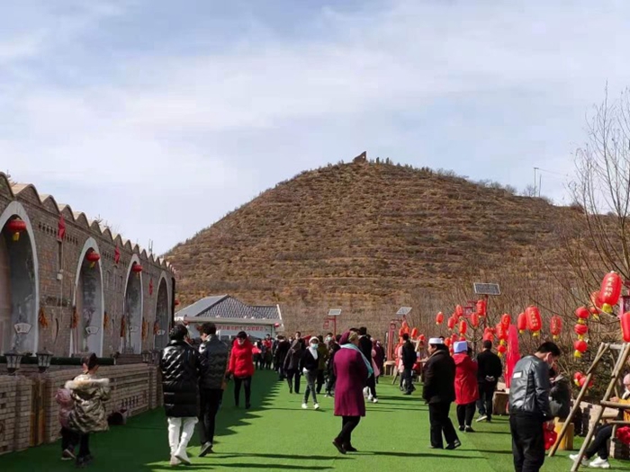 春節期間,西吉縣龍王壩村的窯洞賓館門前人頭攢動(受訪者供圖)