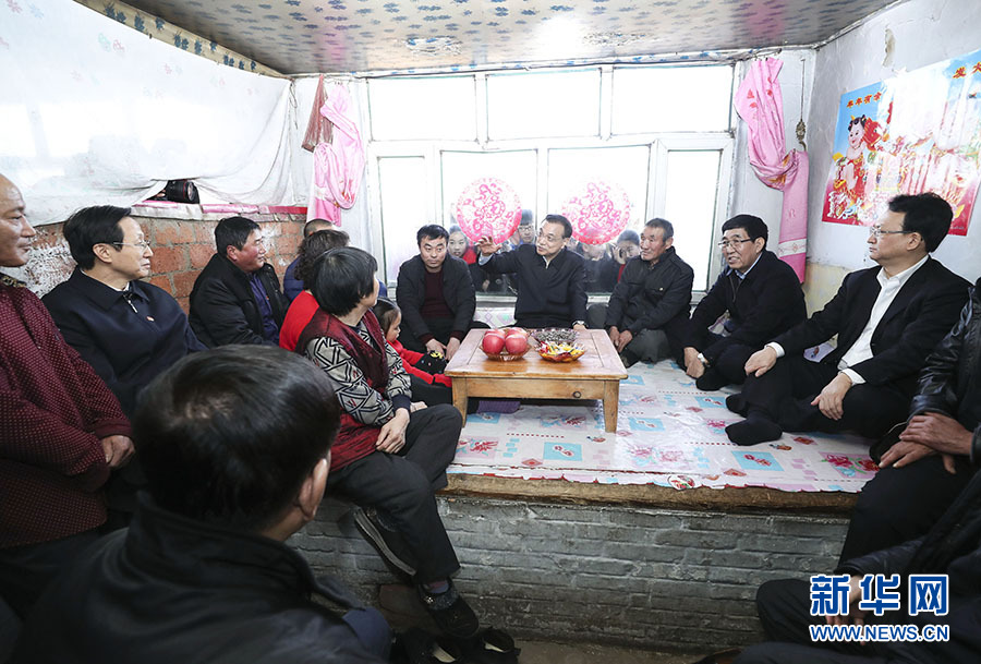 2月12日至13日,中共中央政治局常委、國務院總理李克強在吉林省白城市鎮賚縣考察。這是2月12日,李克強在鎮賚縣英華村看望慰問貧困戶,同村民親切交談。 新華社記者 龐興雷 攝