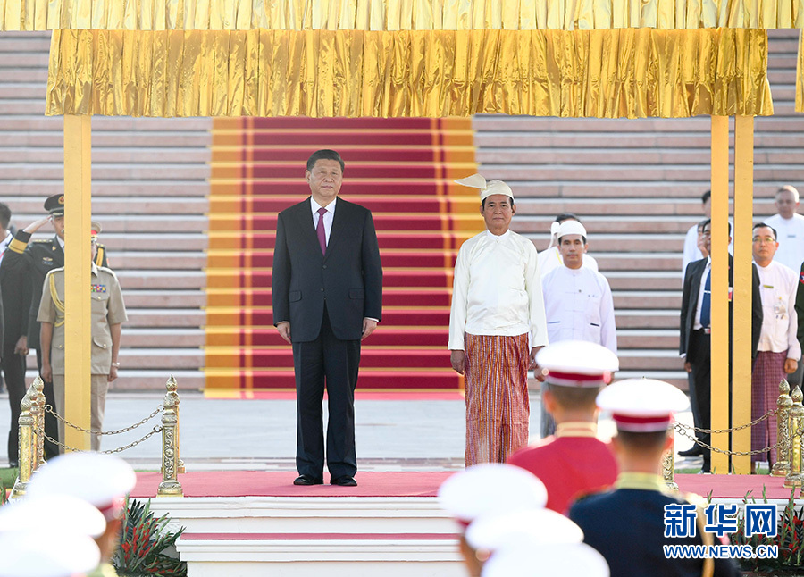 新華社內比都1月17日電(記者蔣國鵬)當地時間1月17日下午,國家主席習近平在內比都總統府出席緬甸總統溫敏舉行的隆重歡迎儀式。
