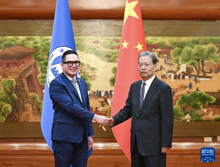 5月14日,全國人大常委會委員長趙樂際在北京會見中美洲議會議長埃爾南德斯。新華社記者 張領 攝