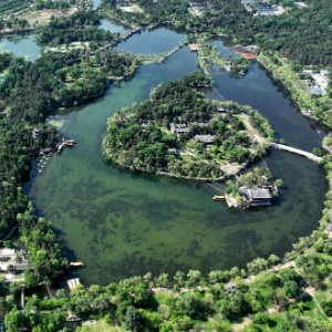 承德避暑山莊一角(2025年5月20日攝,無人機照片)。避暑山莊始建于1703年,是第一批全國重點文物保護單位,被列入世界遺產名錄。