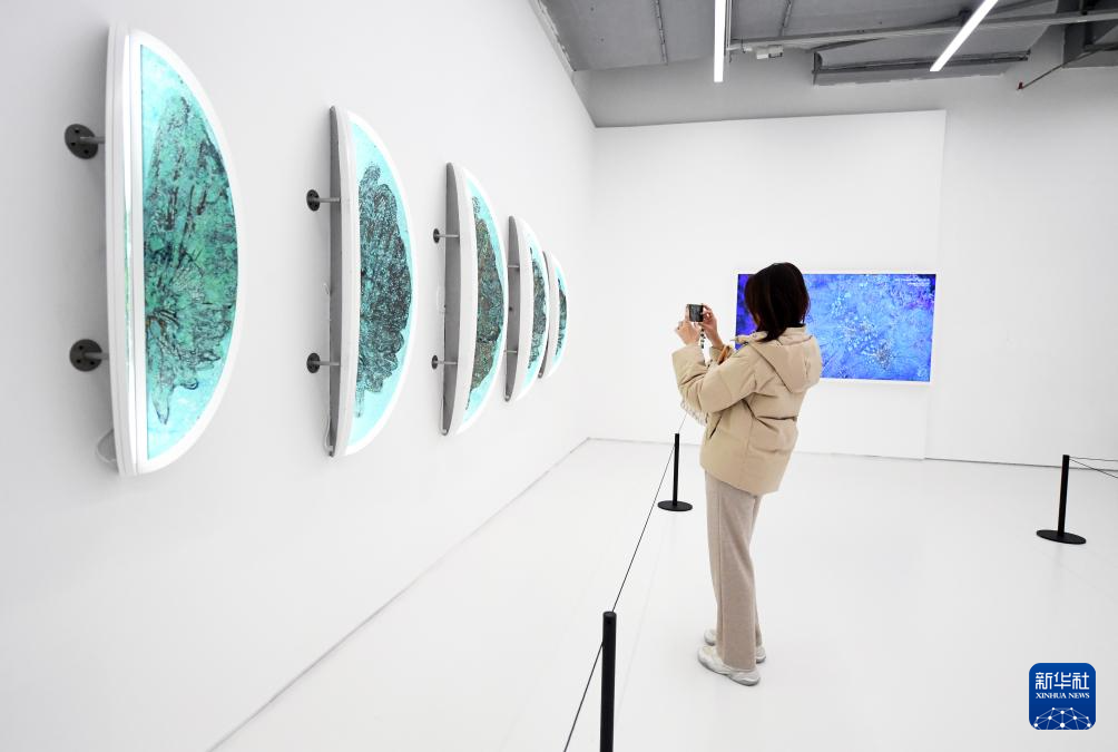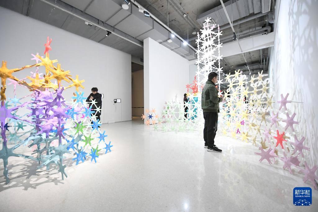 12月16日,在北京時代美術館,觀眾參觀《能量宇宙》藝術展。