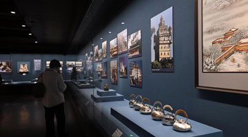 1月18日,觀眾在展覽中觀看介紹《山海經》中蛇形象的展板。