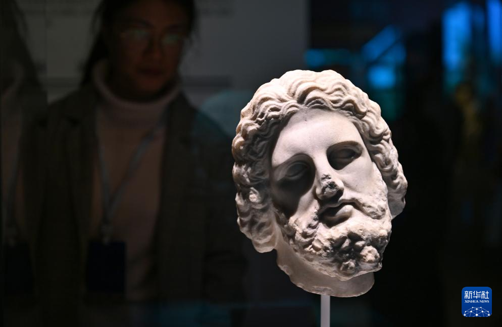 3月20日,觀眾參觀展出的大理石頭像。