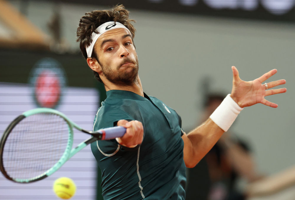 首盤比賽,阿爾卡拉斯在第十局先被破發,以4:6先丟一盤。第二盤,雙方互破兩局進入“搶七”,阿爾卡拉斯依靠強大的跑動能力屢次化解穆塞蒂兇猛的正手進攻,以7:6(3)贏下第二盤。