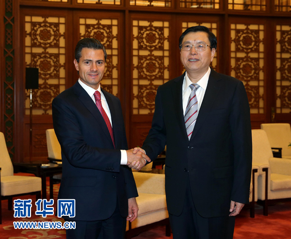 ????張德江說,中墨同為重要新興國家,兩國共同利益多,合作前景廣。去年雙方建立中墨全面戰略伙伴關系,有力地推動了各領域合作發展。此訪期間,習近平主席與總統先生達成新的重要共識,體現出雙方在高度互信基礎上加強合作的強烈愿望。中國全國人大將與墨西哥國會共同努力,深化立法機關友好關系,加強治國理政經驗交流,營造務實合作法律環境,夯實民意和社會基礎,為落實兩國元首達成的共識、推動中墨全面戰略伙伴關系實現新的更大發展作出積極貢獻。