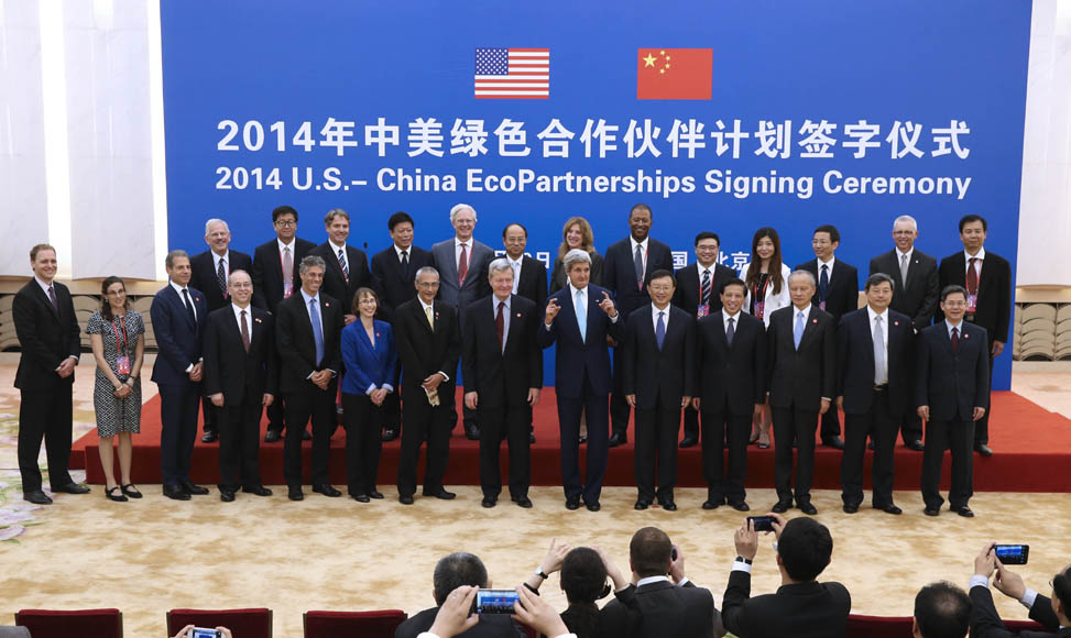 楊潔篪與美國國務卿克里共同出席2014年中美綠色合作伙伴計劃簽字儀式