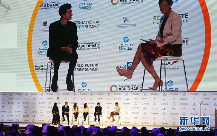1月15日,在阿聯酋阿布扎比舉行的2018世界未來能源峰會開幕式現場,五名來自不同國家和地區的青年代表就可持續發展等議題進行討論。 新華社記者蘇小坡 攝