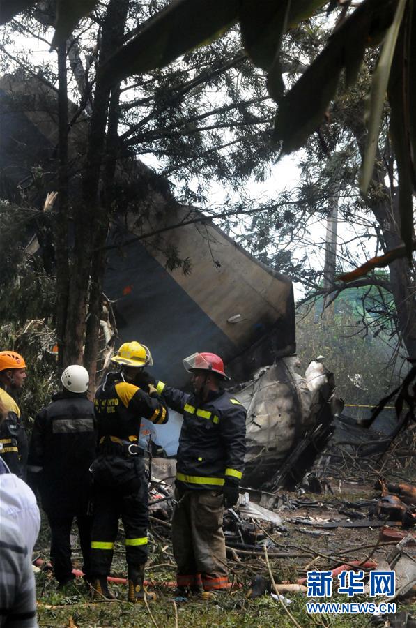 5月18日,在古巴哈瓦那何塞·馬蒂國際機場附近,救援人員在墜機現場工作。新華社/拉美社