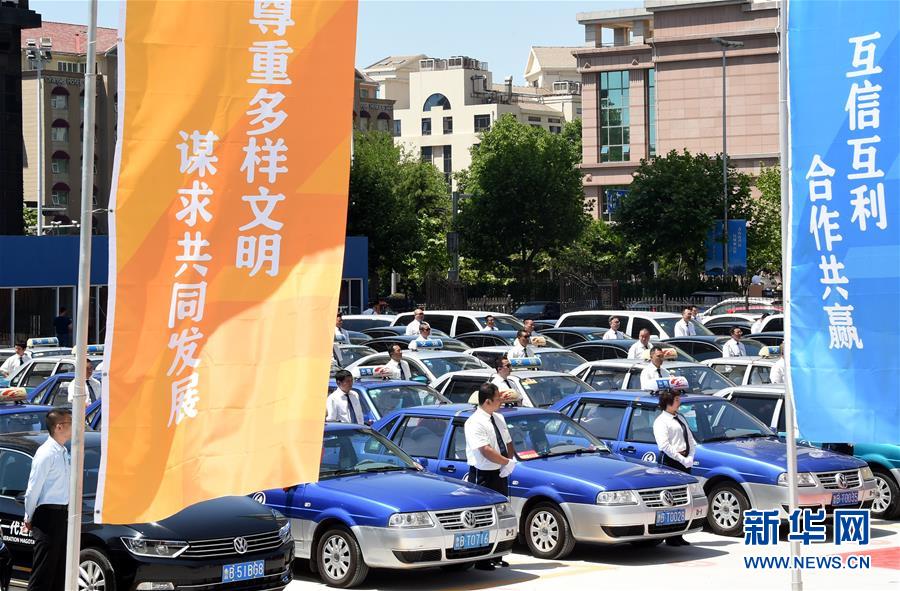 當日,為迎接即將舉行的上海合作組織青島峰會,青島市舉行城市交通運行服務保障誓師大會。 新華社記者 李紫恒 攝