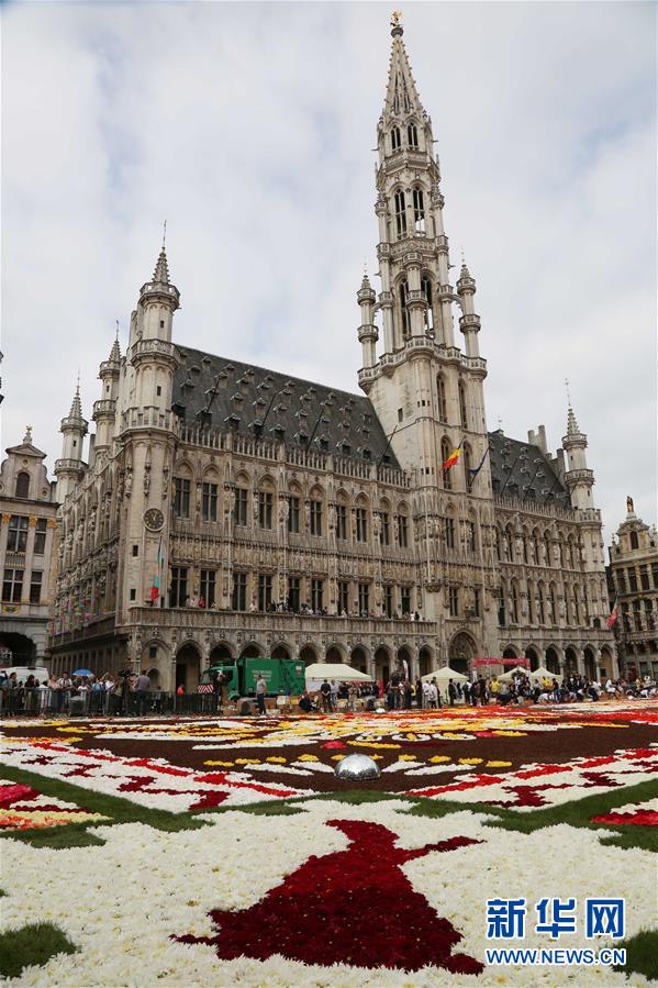 8月16日,由50多萬朵秋海棠鋪就的鮮花地毯亮相比利時布魯塞爾大廣場。 新華社記者王曉郡攝