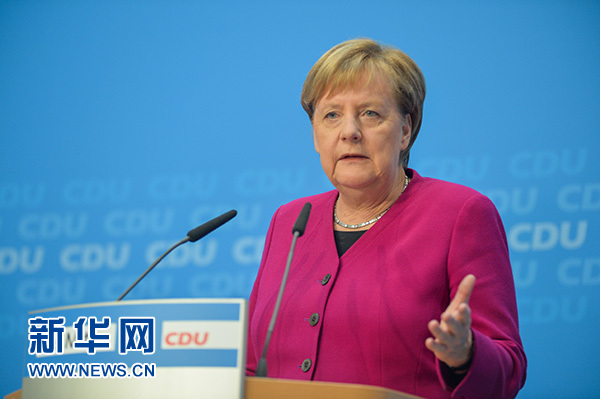 10月29日,在德國柏林,德國總理默克爾在基督教民主聯盟黨內發布會上講話。新華社記者 連振 攝