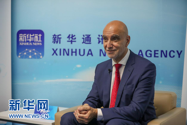 圖為達能公司高級副總裁帕斯卡爾·德彼得里尼接受新華網獨家專訪。新華網 郭小天攝