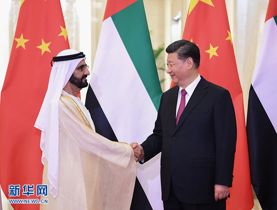 習近平指出,去年7月我訪問阿聯酋期間,兩國宣布建立全面戰略伙伴關系,揭開中阿關系發展新篇章。中方視阿聯酋為共建“一帶一路”的重要合作伙伴。雙方要穩步推進以能源合作為主軸、以投資和基礎設施建設為兩翼、以高新技術為增長點的務實合作。下階段要對接創新發展戰略,打造兩國合作新增長點。要深化打擊恐怖主義和極端勢力等安全領域合作,共同維護兩國和地區安全穩定。副總統先生提出的“擁抱中國”計劃深受阿聯酋民眾歡迎,要不懈推動兩國人文交流。中方支持阿方明年舉辦中東地區首屆世博會。